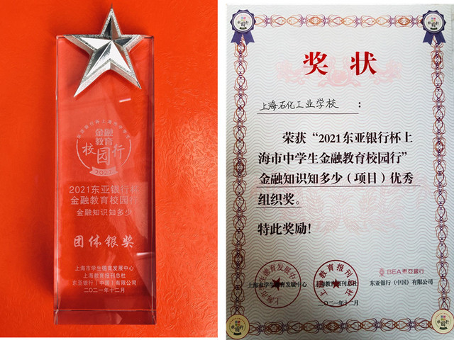2021东亚银行杯上海市中学生金融教育校园行活动于12月12日下午举行颁奖典礼,我校获得团体银奖。本次活动由上海市学生德育发展中心、上海教育报刊总社、东亚银行(中国)有限公司主办,上海中学生报承办,参与对象涵盖初中、高中、中职在校学生,内容包括“金融知识知多少”竞答环节、征文和演讲环节。