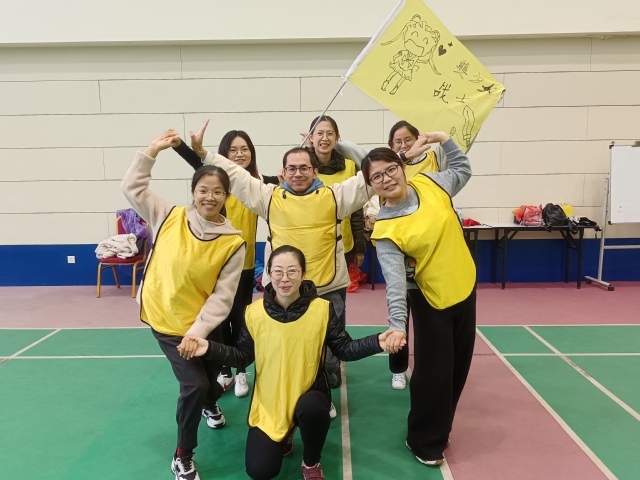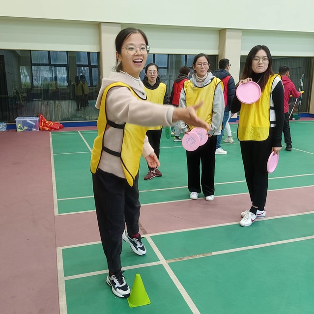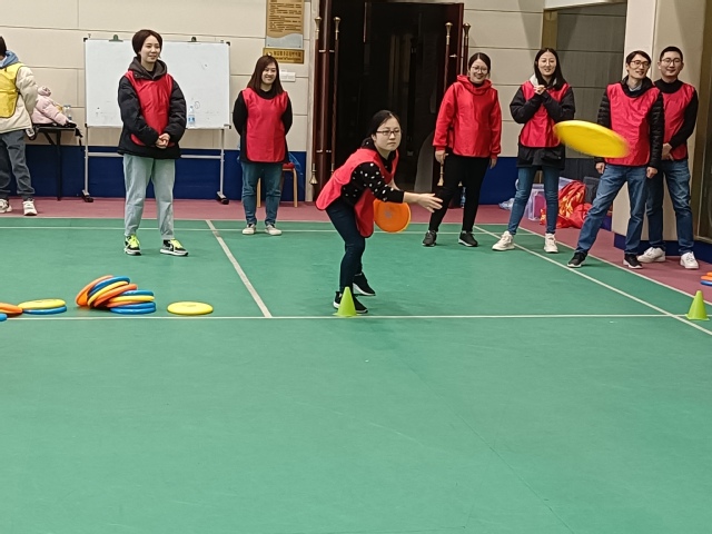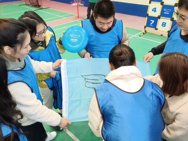 下午开展的是“团队飞盘赛”。学员们通过“快乐敲背”、“拍拍操”、“春夏秋冬,花落花开”等热身游戏,开启了破冰之旅。随后,学员们分成了红、黄、蓝三队。每队选出了队长和队秘,并相继完成了起队名、想队号、制队旗等环节。“蓝色飞翔”、“乘风破浪”和“美少女战士”三支团队应运而生,展现了学员们无限的想象力、创造力和团队协作精神。在“团队飞盘赛”的竞技环节,三支团队互相加油打气,展现了石工人“比赛第二,友谊第一”的竞技精神。最终,“蓝色飞翔”队技高一筹,获得了第一名。
