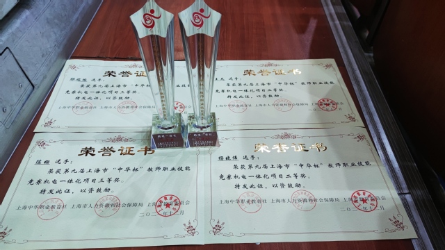 2021年12月25日,我校机电科王凡、杨晓伟、陈姗、鄢熔熔四位教师在嘉定区青少年活动中心参加了2021年第九届上海市“中华杯”教师职业技能竞赛颁奖大会。本届“中华杯”竞赛由上海中华职业教育社、上海市人力资源和社会保障局、上海市教育委员会共同主办。本届“中华杯”竞赛以先进制造业、战略性新兴产业、现代服务业、高新技术产业的发展需求为赛点,共开展了22个职业技能竞赛项目。机电一体化项目为今年新增赛项。王凡、杨晓伟获得机电一体化赛项二等奖,陈姗、鄢熔熔获得机电一体化赛项三等奖。