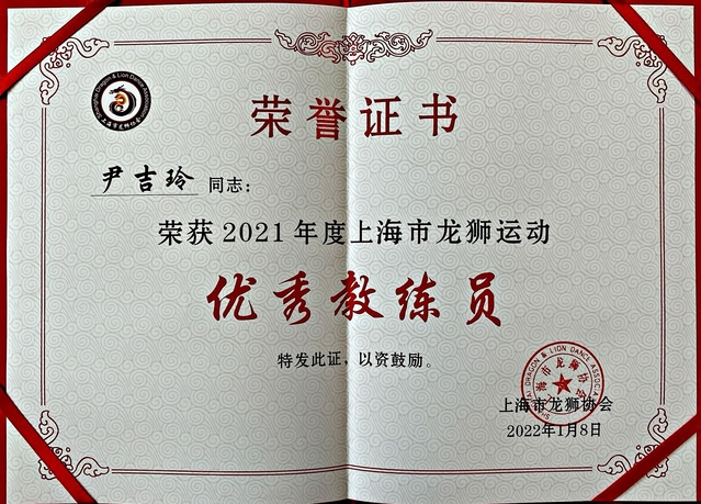 龙狮运动是中华民族的文化瑰宝,是中华民族璀璨的文化精华。校领导高度重视传统文化在校园中的推广,龙狮项目得到了学校各部门的大力支持。2021年,尹吉玲老师放弃周末休息时间,与龙狮队一起艰苦训练,不畏严寒酷暑,在第八届上海市学生龙文化全能赛中荣获龙狮赛二等奖。