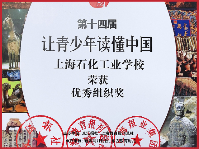 2021年9月,我校组织学生参与了由文汇报社、上海教育报刊总社、上海报业集团举办的“第十四届让青少年读懂中国”高中征文竞赛”,今日获悉:191化工02班陈君妍同学获得三等奖;201会计班顾润青、201化工02班赵奕凯、201商务英语班陆领苗获优胜奖;上海石化工业学校荣获“优秀组织奖”。