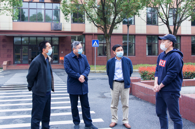 3月18日,金山区教育工作党委书记顾宏伟、党办主任平英来我校考察学校疫情防控和在线教学工作。学校校长高炬和党委书记林国新全程陪同。