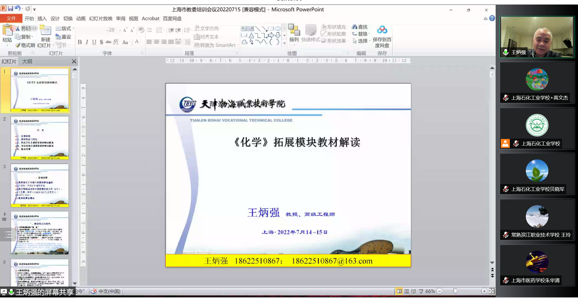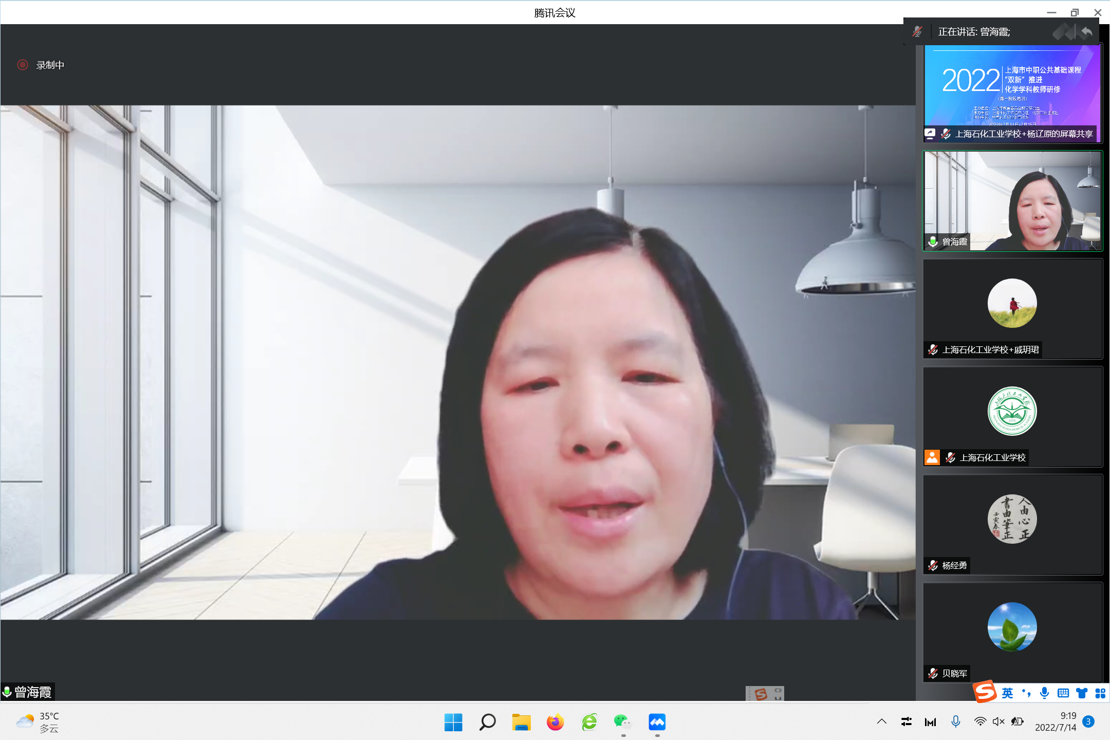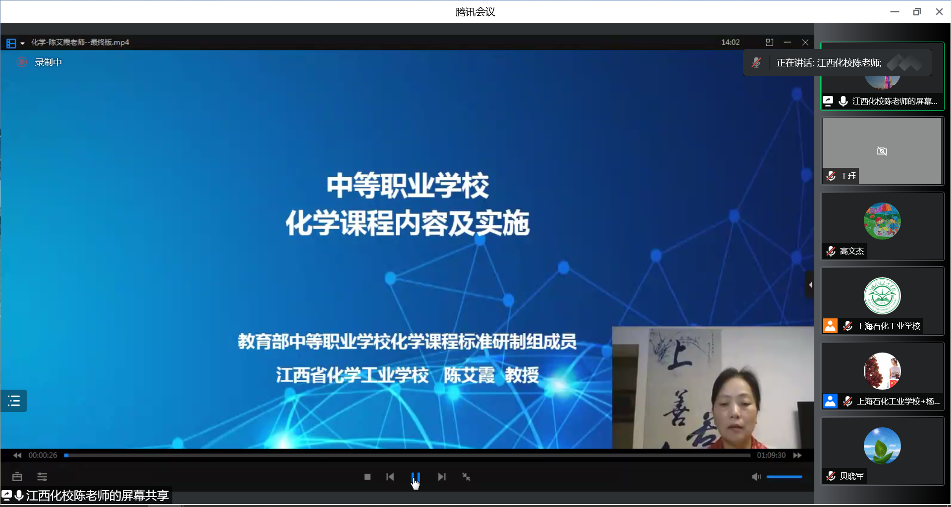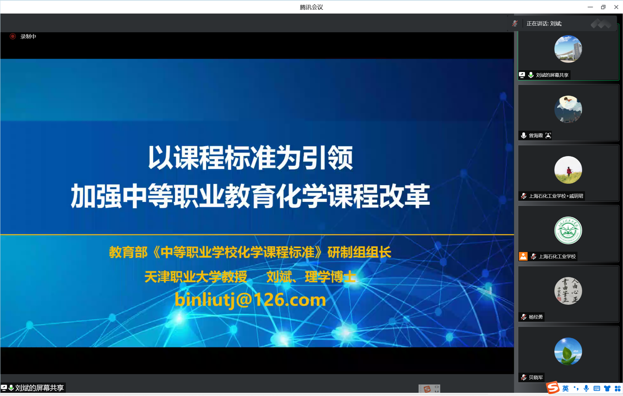 为贯彻《国家职业教育改革实施方案》精神,落实《中等职业学校公共基础课程方案》等文件精神,进一步深化上海中等职业学校公共基础课程改革,根据《上海市中等职业学校公共基础课程“双新”推进工作方案》工作要求,上海市教育委员会教学研究室开展了中职公共基础课程“双新”推进工作化学学科教师研修活动。7月14至15日,此次化学学科教师研修的第一阶段线上培训会成功举行。