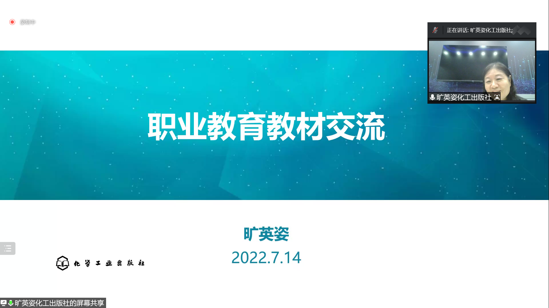 7月14日下午,化学工业出版社编审旷英姿老师以《新形态教材开发与实践》为题跟教师们进行了分享交流。主要从化学工业出版社职教教材出版情况、新时期国家对职教教材的规范要求、“十四五”职业教育国家规划教材申报简析、新形态教材分享四个方面进行展开。2017年国家成立教材委员会,在党中央直接领导下统筹管理全国教材工作,强化意识形态、价值导向在教材工作中的属性,全方位推进课程思政、习近平新时代中国特色社会主义思想进课堂。全面加强党对教材工作的领导,加强国家对教材规划、出版审核和使用管理的主导权,明确学校党委对教材工作负总责。新时期国家对职教教材的内容规定,教材内容要体现课程思政、立德树人;内容科学先进,针对性强。教材要充分反映行业发展新知识、新技术、新工艺、新方法,对接主流生产技术。要坚持教材“凡编必审”“凡选必审”,多角度对教材进行全面审核。旷老师特别对新型活页式教材和工作式教材进行了解读与区分,活页式重点是形式上而工作式主要内容上的不同。她列举了一些活页式教材案例跟各位教师进行了分享,特别是在教材中课程思政的融入要如盐入水、有味无痕、润物无声,有机融入思政元素。