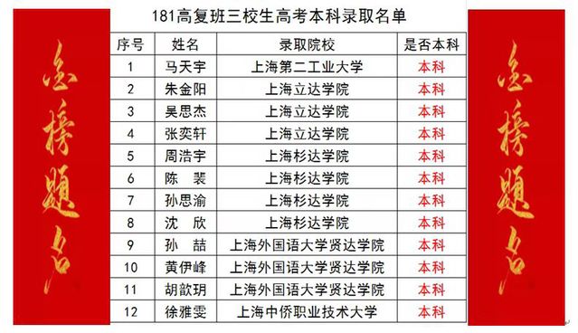 雨润桃李花千树,弦歌不辍奏华章。今年,我校181高复班在三校生高考中共有12位同学顺利录取本科院校,本科录取率为32.4%,高校上线率100%,200分以上学生27人,最高分263分;190化学工程班20位学生文化课成绩全部符合转段标准,200分以上学生19人,最高分245分。在疫情+延考+驻校的多重考验下,迎考师生全力以赴,学校各部门合力保障、通力协作,助力高考学子顺利迎考,安全赴考,圆梦大学。