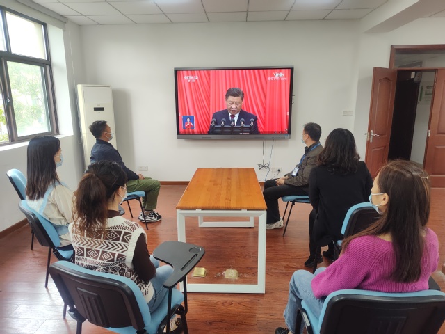及时收听收看党的二十大开幕会直播,是全校教职工的共同心愿。校党委高度重视,统一部署,结合学校新冠肺炎疫情形势和防控要求,精心协调组织收听收看的各项准备工作。在六个党支部的具体安排下,全校教职工满怀激情地认真聆听习近平总书记代表第十九届中央委员会向大会所作的报告,被激励着、鼓舞着、振奋着。