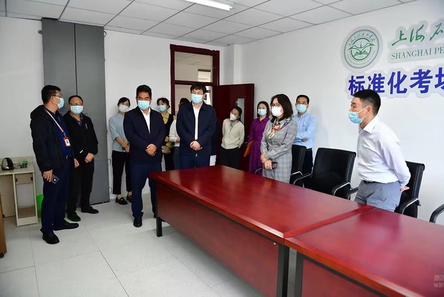 10月21日,金山区副区长葛钧一行来校调研指导自学考试考点工作。区府办、区教育局、公安金山分局、区卫健委、区政务服务办、石化街道等相关部门负责人,学校党委书记高炬、校长陈晓斌陪同调研。