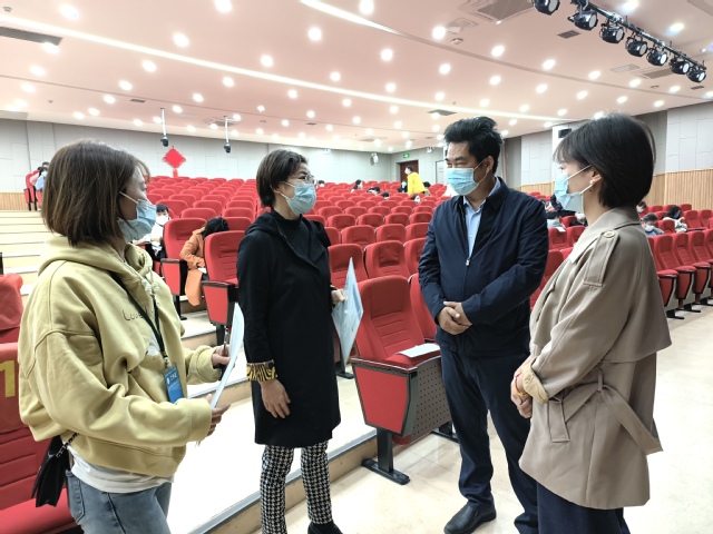 早上7点, 所有工作人员准时到位,再次对整个考场做好细致检查。8点不到,考生经过校门口的各项查码核验后,陆陆续续来到报到室,准备候考。一直到下午2点,当最后一批考生走出考场后,本次测试工作圆满完成,整个考试过程紧张有序、有条不紊。期间,我校校长陈晓斌也来到考试会场,与区语委办的周琴芳老师进行了亲切的交谈。周老师高度评价了我校为本次测试工作所做的扎实到位的各项准备工作。陈校长在表示感谢的同时,也对此次测试工作进行了充分的肯定。他表示,金山区语委办选择我校建立标准化测试站,是对我校的充分认可和信任,我校必然高度重视,全力配合。