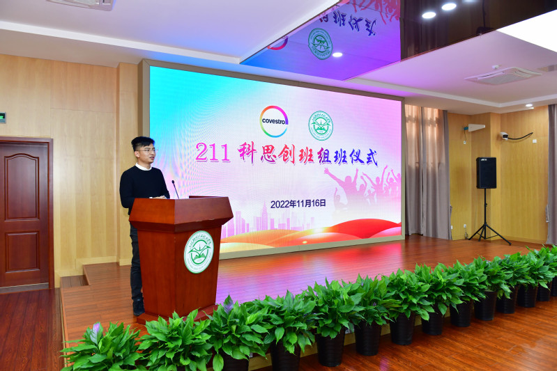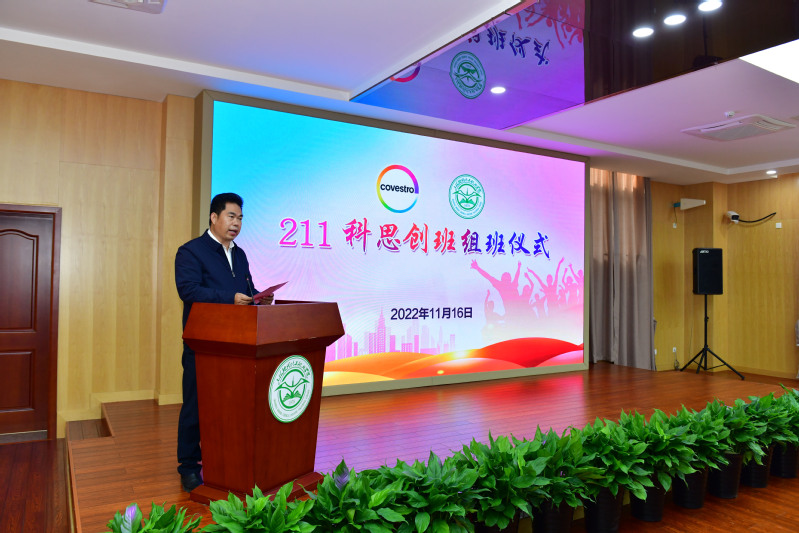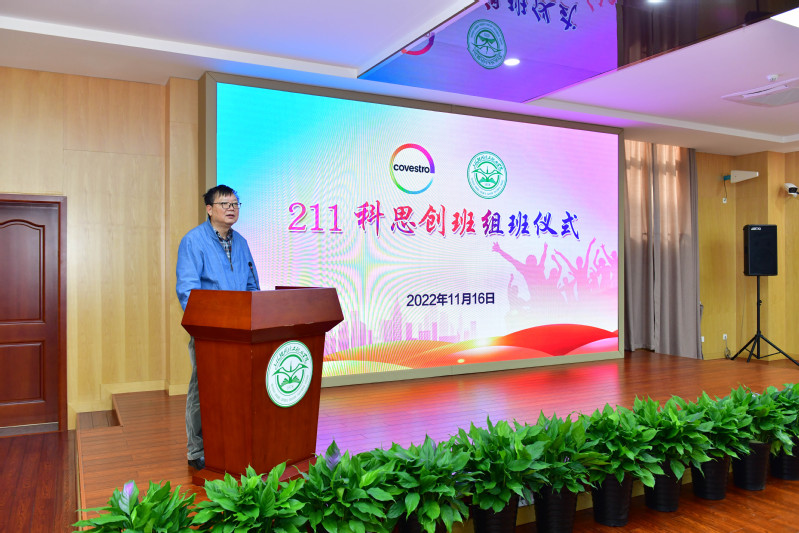 陈晓斌在组班仪式上致欢迎辞。陈晓斌介绍了新学院的发展前景和目标,并回顾与科思创合作二十年来的丰硕成果。他指出,截至目前,校企共组冠名班16个,合计500多名学生先后接受校企联合培养。今后学校与科思创将继续秉持“八共”合作机制,实现产教深度融合。陈晓斌提出,希望211科思创班的同学珍惜来之不易的机会,以优秀的师兄师姐为榜样,奋发向上,练就技能本领,提升职业素养;科思创班的全体教师应进一步加强与企业的交流与合作,精心施教,努力培养出受企业欢迎的毕业生,不辜负校企双方的殷切希望。