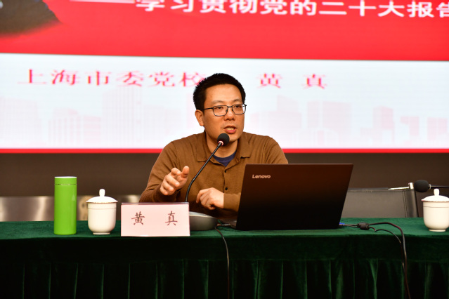 黄真教授围绕“深刻理解党的二十大召开的时代背景和重大意义、全面把握党的二十大报告的总体框架和重点内容及不断增强学习贯彻党的二十大精神的思想自觉和行动自觉”三个方面,深入解读了“中国式现代化”的思想精髓及核心要义。他指出,中国式现代化,以党的领导为根本保证,以中国国情为基本依据,以中国特色社会主义为本质规定,以世界现代化为重要参考,以人民为价值依归,以推动“五大文明”协调发展为核心举措,以民族复兴和世界大同为根本目标。本次报告内容丰富、条理清晰、生动有趣,既有理论的高度,又有现实的深度,为我校党员干部群众学习贯彻党的二十大精神提供了有力指导。
