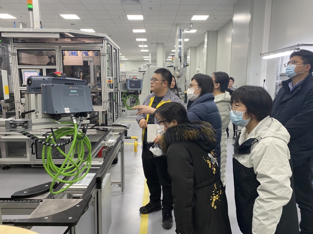 教师们围绕无人值守的全自动生产线旁,仔细观看每个生产流程的控制环节,并与现场工程师做了深入交流。最后,双方返回会议室,就高职新专业的人才培养需求以及不同层次的人才职业能力要求及校企合作等多方面进行了座谈交流。