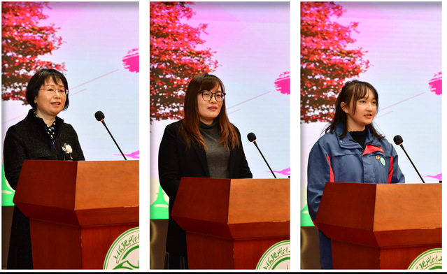201机电01班班主任汤东妹嘱咐同学们感悟成年的意义,做自信自强、勇于担当的好青年,勇敢地超越自我、成就梦想。200应用化工班冯殷琦的妈妈殷美红女士代表家长发言,她的一句句真挚话语,是对孩子过往岁月的回忆,也寄寓着父母对孩子成年的祝福与期盼。201环保02班朱利院同学作为学生代表发言,表达了对父母、师长的感恩之心与以梦为马、不负韶华的青春豪迈。