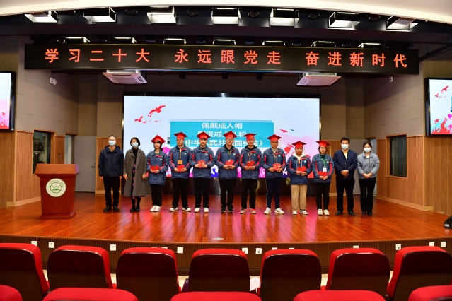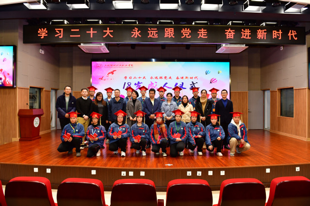 为认真学习宣传贯彻党的二十大精神,全面贯彻习近平新时代中国特色社会主义思想,更好地团结引领广大青年紧跟党的步伐,奋进新征程,建功新时代,12月7日下午,我校在会议中心隆重举行20级学生18岁成人仪式。学校校长陈晓斌、党委副书记杜海燕,石化街道司法所所长陈跃平出席活动,学校学生工作系统相关负责人、20级全体师生及家长代表共同参加了此次仪式。