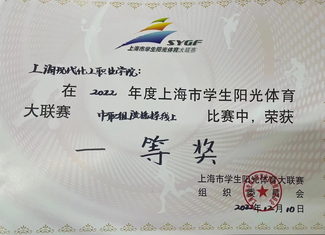 近日,好消息传来,我校在2022年上海市学生阳光体育大联赛广播操比赛(中职组)中荣获一等奖。