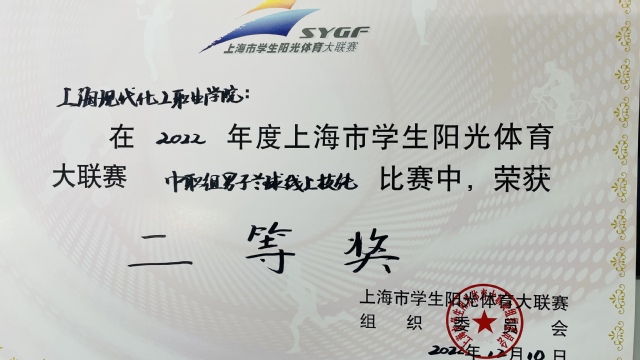 为进一步加强校园体育文化建设,营造良好的校园运动氛围,我校积极引导学生参加各项体育活动。为备战2022年上海市阳光体育大联赛篮球比赛,从新学期开始在公共基础学院负责人的关心和协调下,我校男子篮球队在诸葛运国老师的带领下,每周利用课余时间刻苦训练,积极备战,在战术、体能和精神面貌等各方面取得了长足进步。近日,好消息传来,我校男子篮球队一路过关斩将,获得了本次比赛的二等奖。