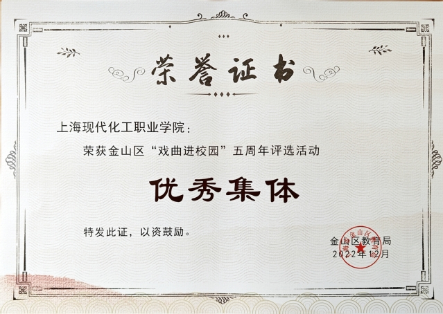 为进一步贯彻落实金山区戏曲进校园的相关文件精神,我校自2017年开始积极开展“戏曲进校园”工作,在近期的五周年评选活动中,我校荣获“优秀集体”荣誉,我校刘凯老师荣获“优秀指导教师”荣誉。