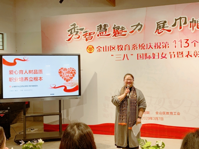 在“三八”国际妇女节113周年来临之际,金山教育局妇女联合会、教育工会召开“秀智慧魅力 展巾帼风采”表彰交流会。上海现代化工职业学院中职特教团队经学校推荐,被光荣授予“金山区三八红旗集体”的荣誉称号。