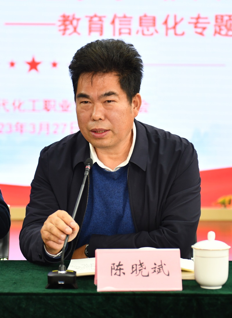 党委副书记、校长陈晓斌强调,要借助信息化标杆校建设契机,推动数字软件常态化运行,助力教育信息化工作;要围绕学校工作中的重点、难点、痛点,形成一套开放、可持续、可示范的信息化工作体系;要结合职业教育特点、对标双高信息化建设标准,做好信息化改造,推动专业建设的转型与升级。