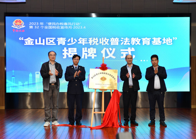在本次活动中,金山区青少年税收普法教育基地在学校正式成立,李松皓、陈勇、张斌、陈晓斌共同为基地揭牌。基地的成立,旨在推动青少年从小树立取之于民、用之于民的税收理念,树立依法纳税、诚信纳税的观念。