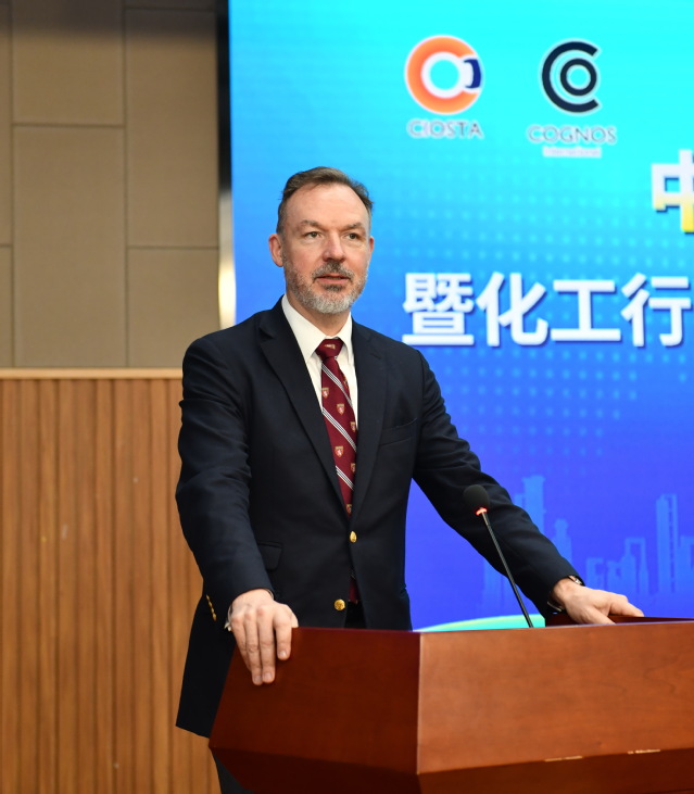 Matthias Afting介绍了德国科格努斯国际教育集团的基本情况与本次合作项目,高度评价了学校化工职业教育双元国际标准的建设成效,表达了对此次三方合作的良好愿景和坚定信心,期待未来加强对接协调,实现强强联合、共赢发展。
