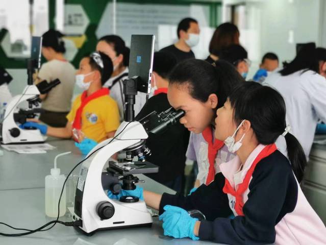 在化学工程学院,显微镜下的微观世界、点火成蛇、AR&MR眼镜下的虚拟化工3个体验项目,通过特色化学反应和先进的虚拟现实工具,拓宽中小学生的视野,体验化学的魅力,培养学生对VR技术等新兴科技的兴趣和关注,为化工领域高技能人才培养提前打下基础。