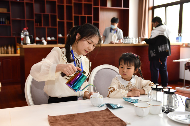 在经贸学院,西点烘焙、宋式点茶、咖啡制作、餐巾折花4个体验项目以“品味人生”为主题,让学生了解现代服务业中不同职业的特性和岗位特点,增进对中西方不同饮食文化的理解,增强学生职业生涯规划的意识和能力。