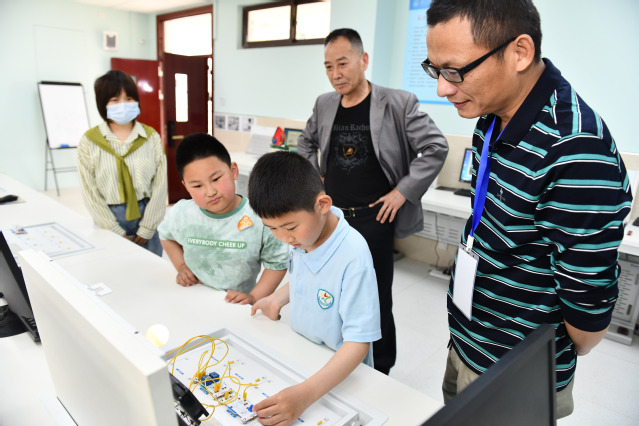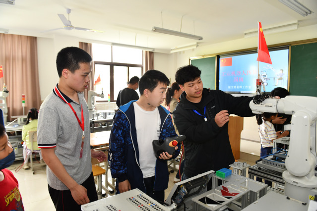 在智能制造学院,光控LED小夜灯制作、工业机器人自动挥舞国旗、工业机器人认读二维码搬运魔方、电子相册制作、物联网之旅5个体验项目,依托物联网、工业机器人等新技术,通过学生的“小体验”去触发自己的“大未来”,让学生了解和发掘自己的潜在能量,展望并遇见未来的自己。