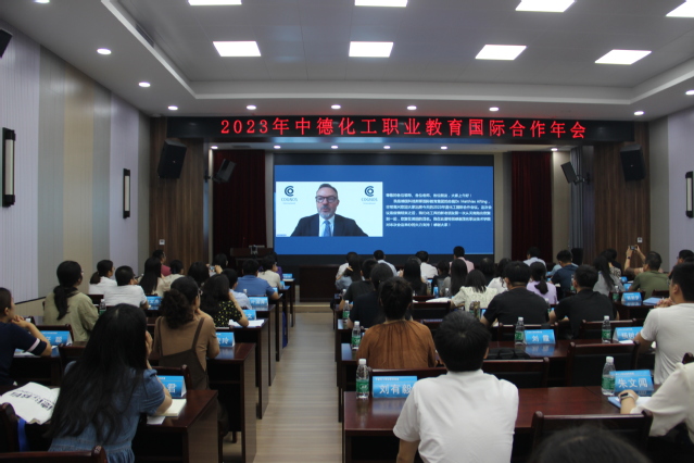 为了进一步提升中德职业教育在化工专业领域的国际化合作和交流、提升双师型教师队伍专业能力建设、促进双元人才培养质量,2023年中德化工职业教育国际合作年会于7月22日至24日在广东茂名职业技术学院成功举行。化学工业职业技能鉴定指导中心、科格努斯国际教育集团、化学工业出版社、东营职业学院、成都石化工业学校、平湖市职业中专、江苏省连云港中等专业学校、盘锦职业技术学院、常熟市滨江职业技术学校、寿光市职业教育中心学校、鲁西化工集团等单位和院校参加。我校党委书记高炬、校长陈晓斌和相关人员参加本次活动。