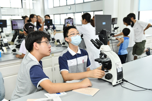 在“显微镜下的微观世界”项目中,学生通过体验显微镜观察污水中的微生物,认识水中的微观世界,深刻直观地了解水中的各类微生物,了解科学仪器观察的方法,有效激发他们的学习兴趣。