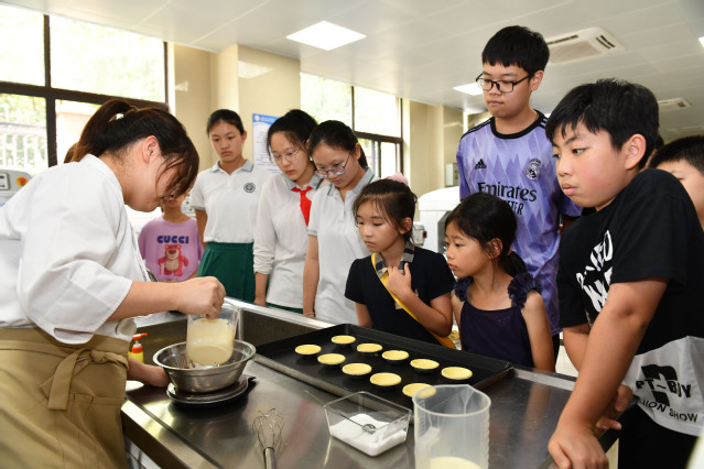 在“西点烘焙”项目中,学生通过充满趣味的动手操作,了解甄选配方、称料、制作、成形、烘烤、装饰等西点制作过程,在快乐中制作出美味、可口的点心,轻松学到生活小技能。