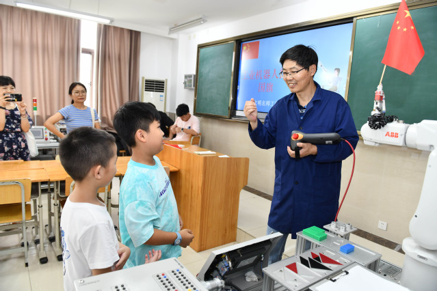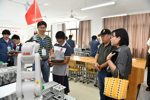 在“工业机器人自动挥舞国旗”项目中,学生通过动手操作与自动运行工业机器人挥舞国旗,让体验者通过看、听、做等多感官参与的方法,了解工业机器人的基本操作方式,领会科技发展对现实生活的巨大提升。