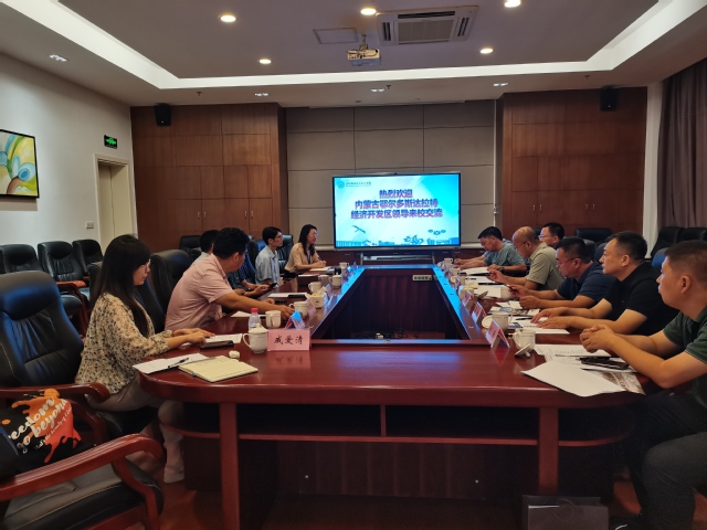8月23日,为有效推进跨省校地合作,内蒙古自治区鄂尔多斯市达拉特经济开发区党工委副书记、管委会副主任云小平带队,一行7人来访我校,洽谈开发区培训基地合作。学校党委书记高炬、校长陈晓斌热情接待了来宾。
