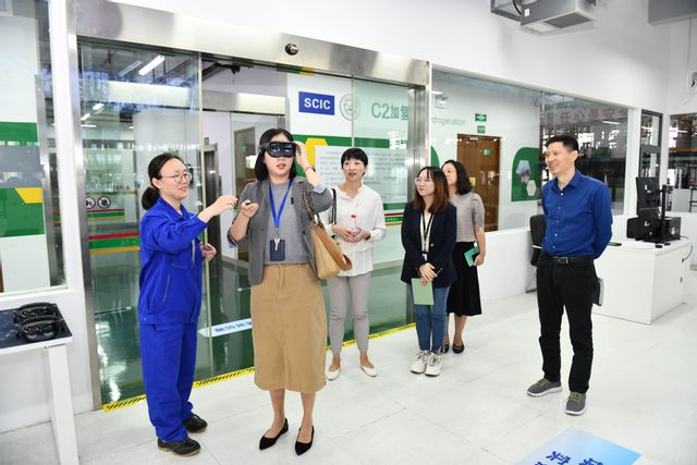 座谈交流前,张怡平一行还参观了学校跨企业实训中心与化工开放实训中心,高度赞扬学校一流的实训设备设施与先进的管理模式。