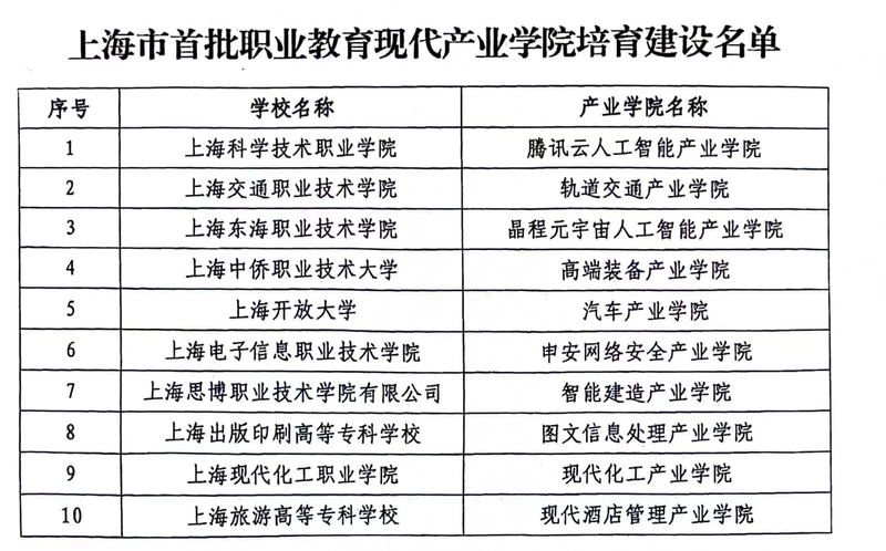 近日,上海市教育委员会公布了《关于公布上海市首批职业教育现代产业学院立项和培育建设名单的通知》(沪教委职〔2023〕44号),我校与中国石化上海石油化工有限公司、科思创聚合物(中国)有限公司、巴斯夫化工有限公司、赢创特种化学(上海)有限公司、圣东尼(上海)针织机器有限公司5家企业合作共建的“现代化工产业学院”成功入选培育建设项目。