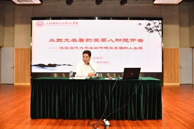 10月18日下午,校长陈晓斌以“从四大名著的主要人物说开去——浅谈当代大学生如何树立正确的人生观”为主题,给我校全体2023级新生上入学教育课。