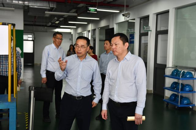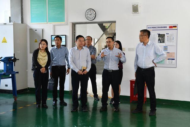 杨俊达一行实地考察了学校校史馆、跨企业培训中心、化工综合实训大楼等场所,了解实训教学管理、企业员工培训、实训设备设施建设及运行等情况,高度评价学校的职前人才培养与职后员工培训工作。