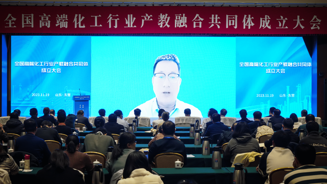 为深入贯彻落实党的二十大精神和习近平总书记关于职业教育的重要指示,更好促进职普融通、产教融合、科教融汇。11月19日,全国高端化工行业产教融合共同体在山东东营召开成立大会。共同体由中国石油和化学工业联合会、全国石油和化工职业教育教学指导委员会指导,联合国内高端化工相关企业、行业组织、科研机构、高等学校、职业院校等53家单位组成。陈晓斌校长代表学校出席本次共同体成立大会。