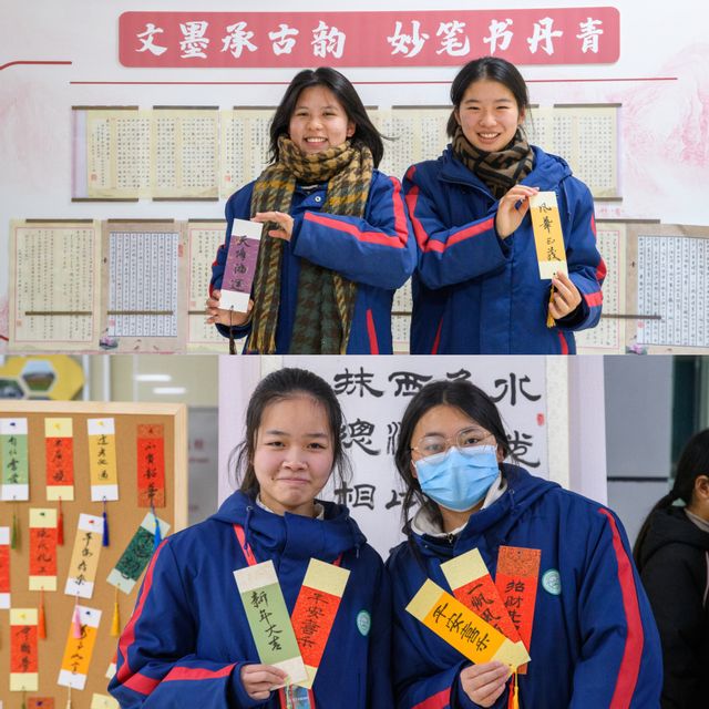 在书法体验区,师生们纷纷拿起毛笔,他们或成竹于胸,挥毫泼墨;或临摹作品,“轻描淡写”;或即兴发挥,自成一体……一抹抹略带羞涩的笑意浮现脸上,一幅幅生动的字画跃然纸上,为整个活动平添了诸多意趣。