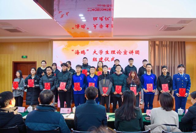 为深入学习贯彻习近平新时代中国特色社会主义思想,推进主题教育走深走实,1月4日,学校在多功能厅举行“海鸥”大学生理论宣讲团组建仪式。学校党委书记高炬、副书记杜海燕出席。纪检监察室、宣传部、学工部、团委、马克思主义学院等相关部门负责同志以及各支部书记、各二级学院代表教师、第一届“海鸥”大学生理论宣讲团成员参加本次活动。活动由校团委书记罗茜主持。