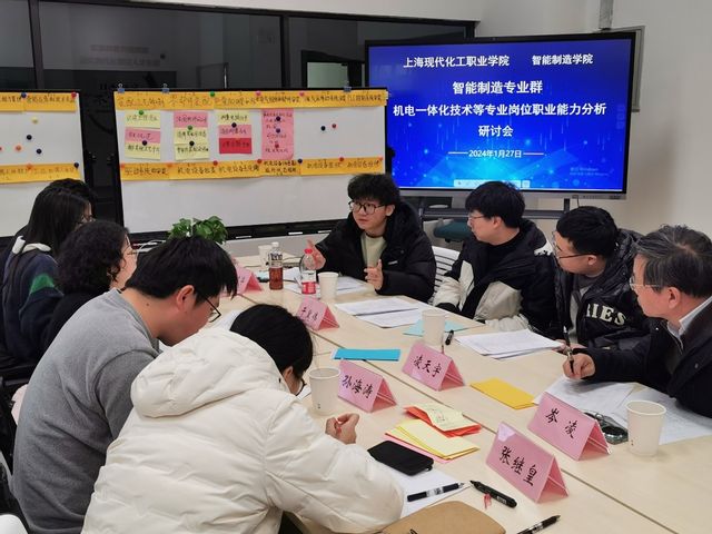 为推进智能制造专业群高质量发展,进一步优化人才培养方案,智能制造学院于2024年1月27日下午在智能制造大楼二楼召开了智能制造专业群岗位职业能力分析研讨会。会议由智能制造学院院长吴敏主持,邀请了数十位不同企业一线操作工程师和岗位技术员参加,学院相关教学团队成员、新专业申报小组成员、骨干教师等参与研讨。