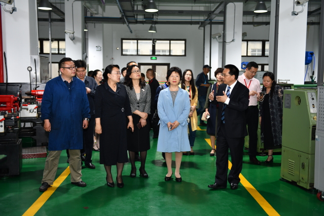 The delegation started with a tour to the History Museum of SPA. The developmental course, magnificent achievements and spiritual connotation of the school showed on the big screen, display light boxes and display boards won visitors' praise and recognition. Next, they visited the Chemical Industry and Human Science Exhibition Gallery, Cross-enterprise Training Center, Numerical Control Training Building and Chemical Engineering Training Building. The neat environment, normative practical training, advanced instrumentation and unique operation mode drew the visitors' interest. During the trip, the guests were briefed on the features and functions of various training programs, characteristics of school-enterprise co-construction of training bases and interesting and thought-provoking concept combination during the course of construction. All the guests gave high praise to the training construction and specialty development of SPA.