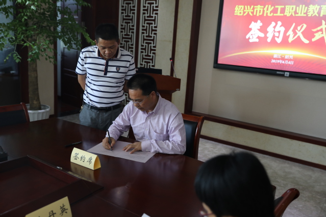 The leaders and guests deliberated and passed the first organization of Shaoxing Chemical Vocational Education Group: Shaoxing Secondary Technical School serving as the chairman unit, Shanghai Petrochemical Academy and other four enterprises or schools serving as the vice chairman units; German AHK and Chinese Chemical Vocational Education serving as the counseling unit. The meeting also deliberated and passed nine units as the governing units. At the meeting, the first Professional Steering Committee was established, which consisted of eight members. Gao Ju, principal of Shanghai Petrochemical Academy, was appointed as one of the eight members of the steering committee. Yu Fang announced the official establishment of Shaoxing Chemical Vocational Education Group. Member units signed the agreement one by one.