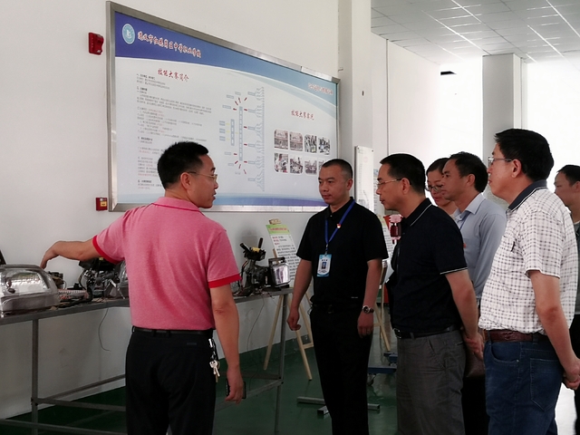 Next, with the company of the leaders of Secondary Vocational School in Honghuagang District of Zunyi City, Gao Ju and his party visited the training rooms of electromechanical, vehicle maintenance and repair, information service and psychological guidance room. During the visit, Gao Ju carefully listened to Long Yongjiang's introduction to school's electromechanical specialty construction. Gao Ju sang highly of the humanistic accomplishment of the teachers and the students of Secondary Vocational School in Honghuagang District of Zunyi City and the school-enterprise cooperation projects already implemented in the school. Meanwhile, to help solve the problems, Gao Ju put forward some constructive proposals and solutions and discussed with the leaders of Secondary Vocational School in Honghuagang District of Zunyi City about the feasibility.