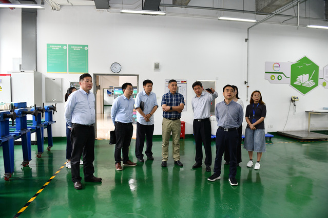 Accompanied by Huang Hanjun, Sheng Wei and his party visited the Cross-enterprise Training Center of the school, the Shanghai Safety Skills Comprehensive Training Demonstration Base and the AHK Sino-German Chemical Vocational Training Base, inspected the practical training of students and the safety training of enterprise employees on the spot, and learned about the construction and operation of Shanghai Safety Skills Comprehensive Training Demonstration Base and Shanghai Safety Production Qualification Examination (Dangerous Chemicals) Test Center.