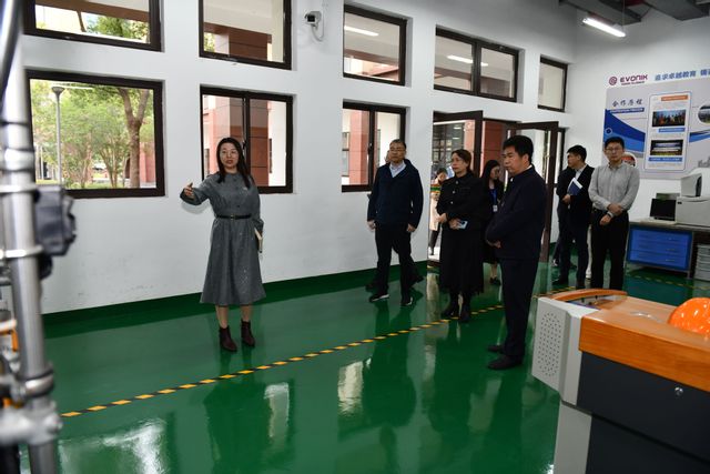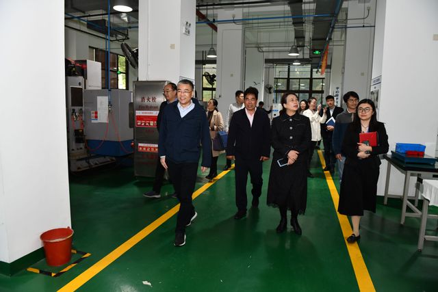 The delegation visited the school's CNC Open Training Center, Cross-enterprise Training Center and Intelligent Manufacturing Building. Yang Song applauded the school's achievements and the idea of building the new higher vocational college. He believed that the school vigorously promoted the reform of vocational education and embarked on a characteristic development road of combining vocational education with regional industrial development, enterprise development and international vocational education. Yang Song pointed out that at present, Jinshan District is grasping the strategic opportunity of integrated development of the Yangtze River Delta and "North-South Transformation" to comprehensively promote industrial transformation. It is hoped that the school will focus on the development trend of regional industrial transformation and upgrading, innovate new mechanism and model of regional integration of production and education, and make new contributions to the integrated development of vocational education in the Yangtze River Delta and the cooperative development of vocational education between the east and the west.
