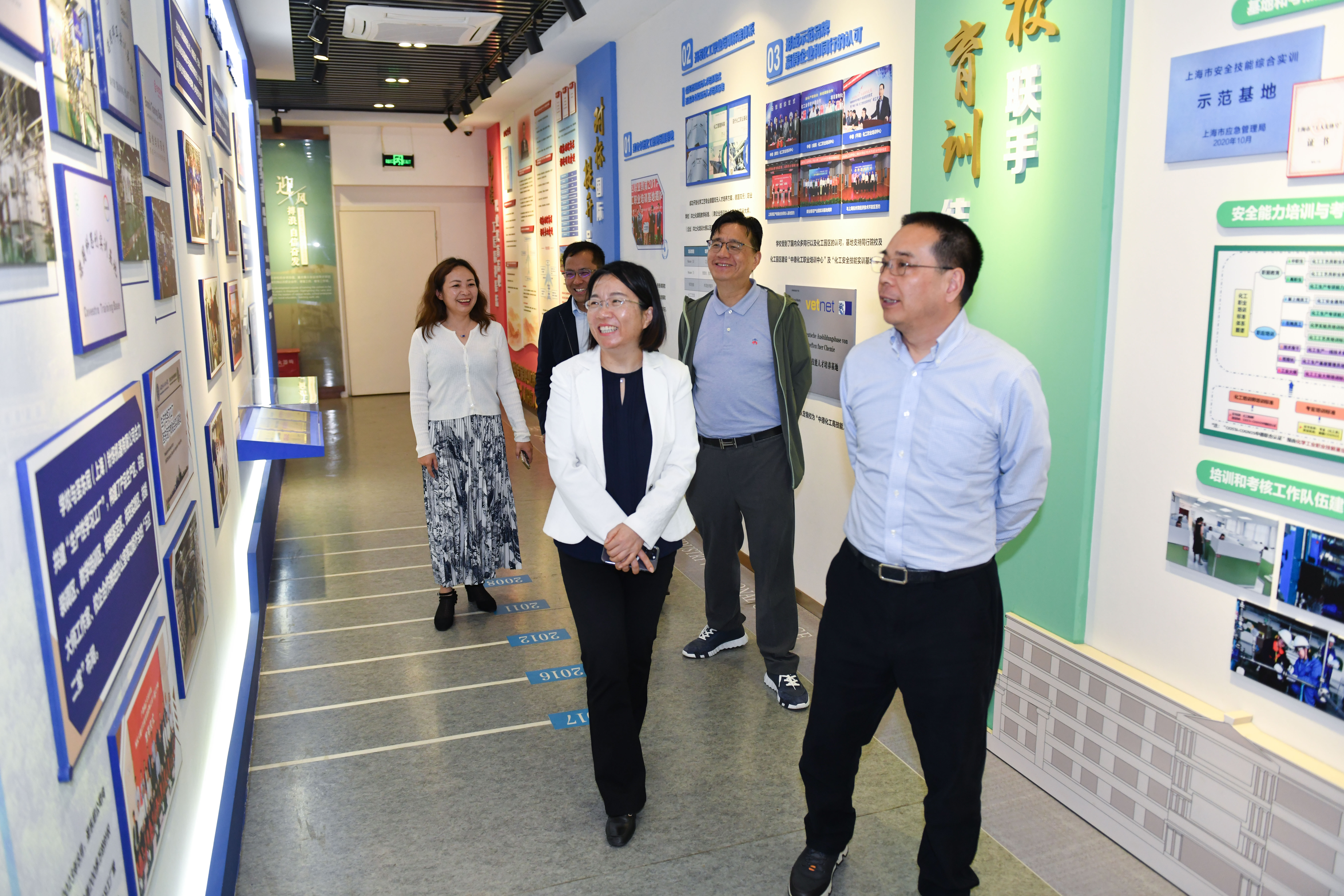 After the discussion, Cao Meiqin and her party visited School History Museum, Chemical Industry and Human Science Popularization Museum and Chemical Comprehensive Training Building to have an in-depth understanding of the history of the school and the cultural heritage of chemical vocational education, the innovative practice of integrating the concept of green chemical engineering into science education, the function and operation of the training rooms of analysis, inspection and environmental monitoring, etc. Both sides conducted on-the-spot exchanges on equipment operation specifications and the teaching mode of combining reality with virtual reality. Cao Meiqin said that the school's advanced training conditions and the integration of production and education have provided a solid guarantee for the continuous training and she is full of confidence in the follow-up cooperation.