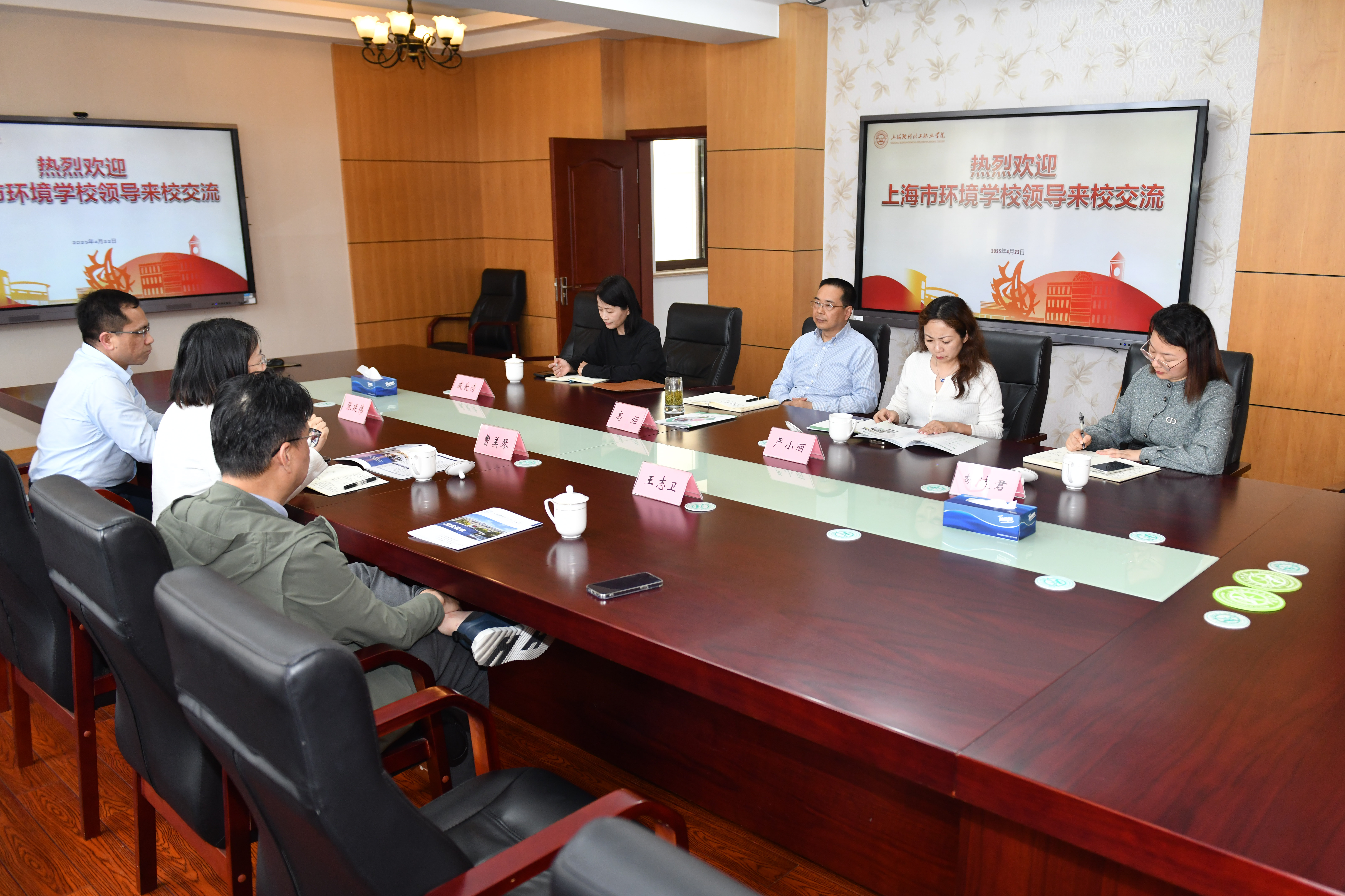 On April 22nd, Cao Meiqin, principal of Shanghai Environmental Science School, led a team to our school for a visit. The two sides conducted in-depth exchanges on topics such as deepening inter-school cooperation and promoting the "3+2" cooperation on analysis and testing specialty. Gao Ju, secretary of the Party Committee of our school, and heads of relevant departments attended to discuss the new mechanism of collaborative education in vocational education. After the meeting, the guests visited training facilities to further consolidate the foundation of cooperation.