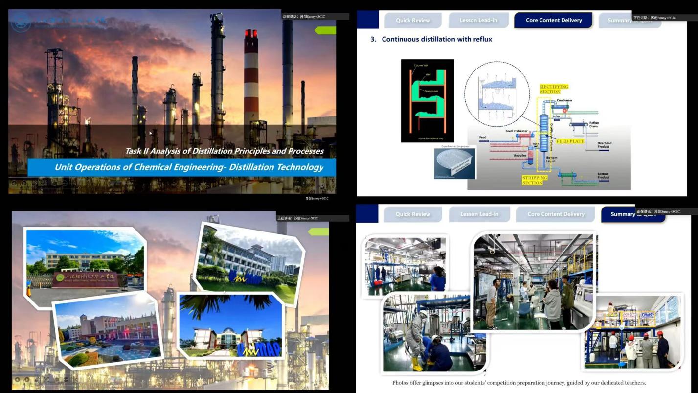 This lecture is our school’s first international course for overseas universities, focusing on distillation technology in chemical unit operation, and systematically explaining its basic principle, technological process and practical application. With rich teaching experience and fluent English expression, Ms. Su vividly presented complex chemical knowledge, and combined with case analysis and interactive questioning, effectively improved students' understanding and participation. After the lecture, there were interactive questions and answers and exchanges, and the students gave positive feedback.