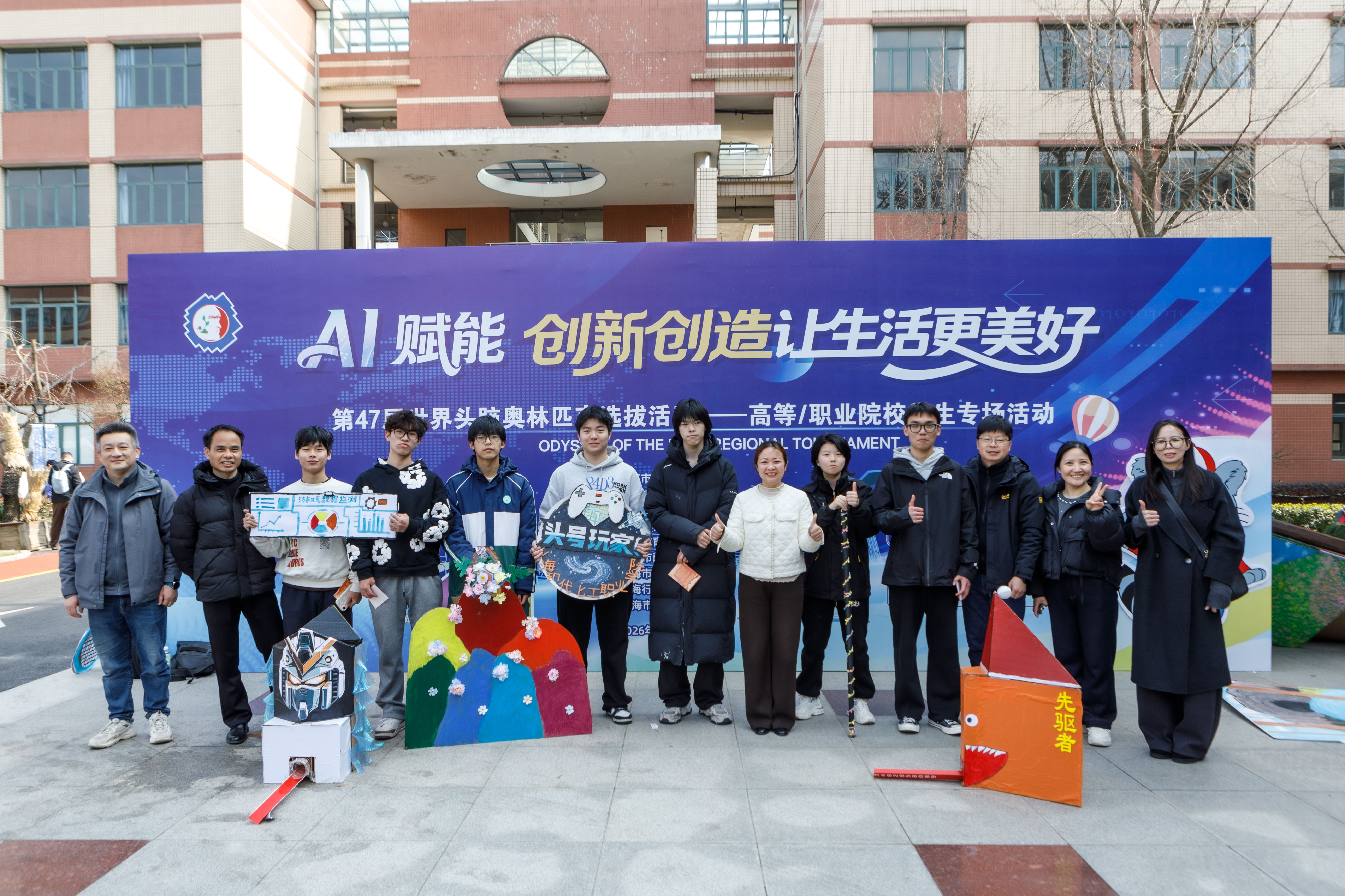 On March 8th, the 2026 Shanghai Odyssey of the Mind Innovation Competition and the 47th World Odyssey of the Mind Regional Tournament concluded successfully at Shanghai Xingjian College and the West Campus of Shanghai Jing'an Daning International Primary School. Guided by the Shanghai Municipal Education Commission, and jointly organized by China Shanghai Odyssey of the Mind Association, Shanghai Science and Technology Art Education Center, Shanghai Education Press Group, and Shanghai Jing'an Education Bureau, the event attracted over 550 outstanding teams from around the world, showcasing the innovative spirit and collaborative intelligence of global youth. Shanghai Modern Chemical Industry Vocational College sent 10 teams to participate in the competition. Relying on their creative performances, rigorous and precise problem-solving approaches, ingeniously crafted props, and composed, outstanding on-the-spot presentation, our teams won awards in all categories of the secondary and higher vocational groups, including 4 first-place prizes. This fully demonstrated the innovative capabilities and comprehensive strengths of our teachers and students.