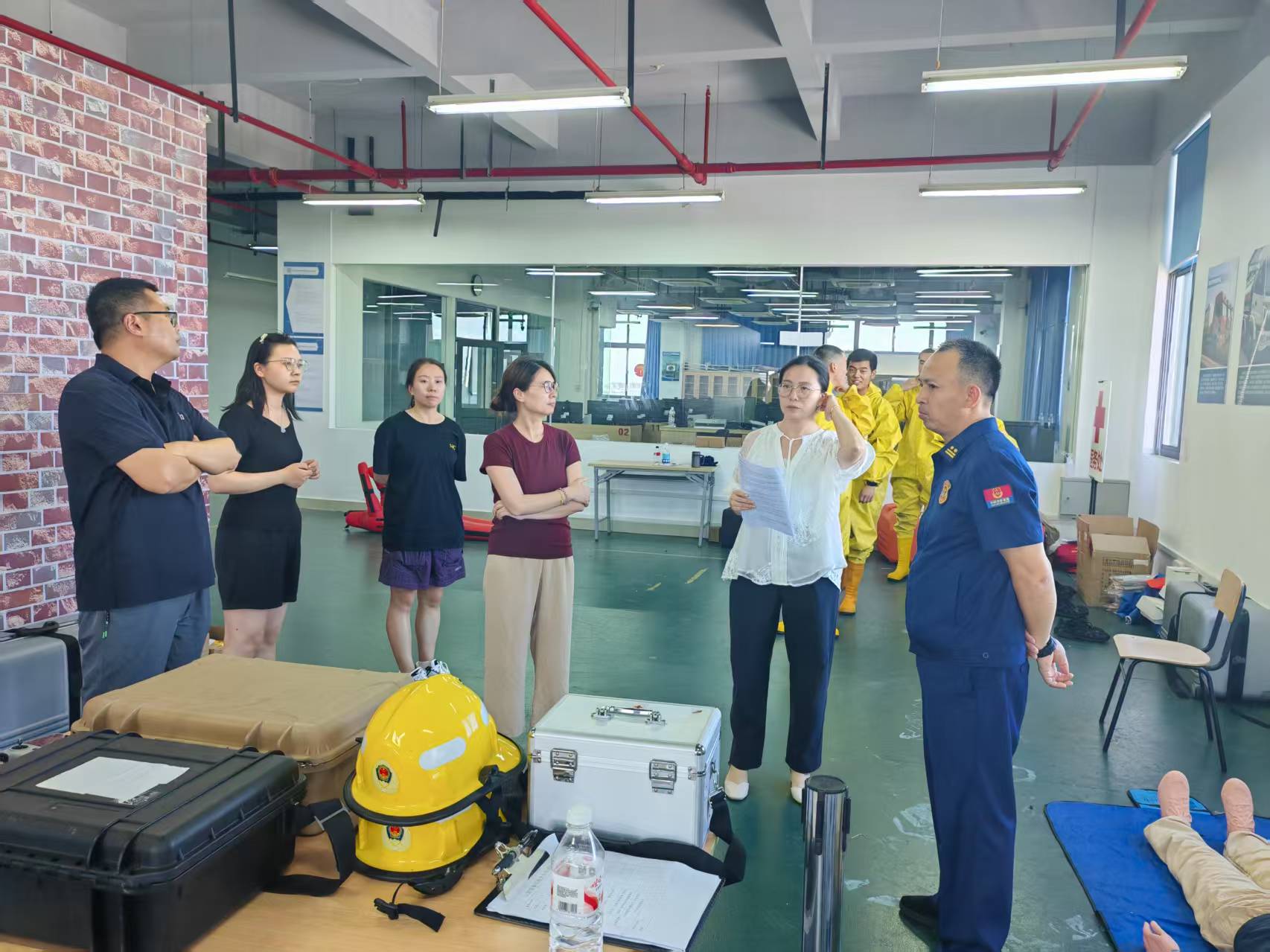 金山支队专家抵达校园后,即刻了解集训队的训练情况。他们首先对训练场地和设备进行了检查,对现有的模拟液氨泄露场景及相关救援设备的配置给予了认可,并针对部分设备的使用细节提出了优化建议,确保设备在实际操作中能发挥最大效能。